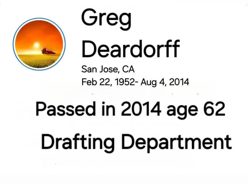 I moved from San Jose to Gilroy last summer. At the moment I have boxes of pictures. I will look through them. If I find any, I will gladly share them with you. By the way, I retired from Northrop Grumman in July of last year. I love being retired! Thank you, Elvira